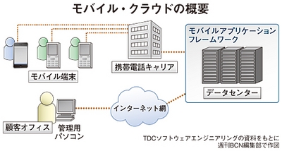 組み込み以外でもユニークな動きがある。モバイル向けクラウド/SaaSビジネスを得意とするTDCソフトウェアエンジニアリングは、「モバイル・クラウド」を考案する。同社は、キャリアや機種ごとに仕様の異なる日本のガラパゴスケータイに合わせるかたちで、携帯電話アプリケーションフレームワーク「Mobile Base(モバイルベース)」を構築。複数キャリアや機種に向けて均質なアプリケーションサービスを提供してきた。ここに来て、世界標準の一つであるAndroid搭載のスマートフォンが急増していることを踏まえ、同社では2011年の早い段階で、Mobile BaseのAndroid対応に向けた準備を進める。