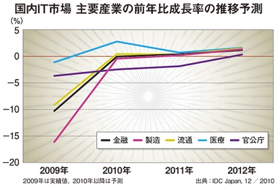 伸びない市場で求められる変化 2008年秋に始まった世界同時不況の後、09年は年間を通じてどん底を味わった国内IT産業。2010年は、あまりにも落ち込んだ09年と比較すれば回復したものの、計画通りとはいかなかった。そして2011年が到来した。