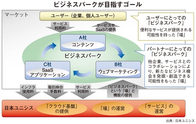 事業化や技術などの支援にあたっては、SaaS企画支援&ポータル「ビジネスパーク」を運営している。参加することで得られるメリットは、(1)SaaS事業の立ち上げノウハウを提供する「SaaS企画支援サービス」でビジネスと技術の両面からシナリオを作成、(2)ポータルサイトに商品情報や利用事例を掲載、(3)参加企業同士でのビジネスマッチングの機会として開催する交流会を活用──の三つである。交流会は、SaaSの利用事例や最新のクラウド動向などの情報収集などに役立てることができる。