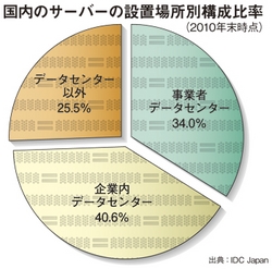 甚大な被害をもたらした3月11日の東日本大震災。それは、IT業界にも多大な影響を与えている。一つは、ユーザー企業が事業継続計画(BCP)を真剣に考え始め、情報システムを自社で保持・運用せずに、専門のIT事業者に預ける動きが出てきたことだ。もう一つは、計画停電。東京電力は計画停電を一時中止することを発表しているが、エアコンの需要が強まる夏には、再び広範に計画停電を実施する見込みで、その場合は東京23区でも実施される可能性が高い。自社でシステムを運用する企業にとっては、システムの停電対策が急務となり、そうなれば、BCPの観点からシステムはIT企業に預けたほうがいいという機運が高まる可能性が高い。この震災が、期せずしてデータセンター(DC)事業者に特需をもたらすという構図が生まれたのだ。