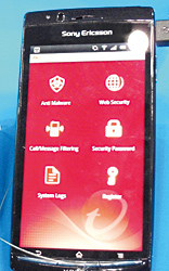 | マカフィーのモバイル製品紹介ブース | 「Trend Micro Mobile Security」のメニュー画面 |