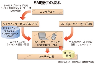 キャリアを含むサービスプロバイダ向けの「エフセキュア プロテクション サービス モバイル」では、端末を一元的に管理するウェブベースの管理ポータルを用意した。エフセキュアがバックエンドサービスを利用して、サービスプロバイダはユーザー数に合わせてすぐに管理ポータルからライセンスを発行・変更することができる。ライセンスの発行・変更管理の機能は、サブスクライブマネジメントインターフェース(SMI)として公開している。SIerはSMIを活用したエフセキュアのライセンス管理機能と自社のソリューションやユーザー企業のシステムとインテグレーションすれば、ユーザーに独自の管理ポータルを提供することができる。桜田代表は「製品単体を前面に出すのではなく、ソリューションに組み込んでもらうパーツとして、シェア拡大を目指したい」と話している。