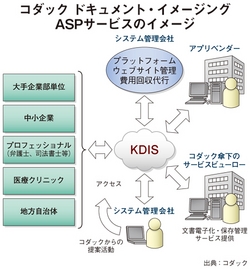 一方のコダックは、前述したISV製品と連携したフロント系の製品をSIerを経由した販売を積極化するほか、同社スキャナを大量に所有するデータエントリー会社を利用した新たなASPサービスを今秋にも開始する。このサービスは「Kodak Document Imaging Service(KDIS)で、同社が提供するアプリを購入し、紙文書を電子化する企業がポータルから申し込めば、データエントリー会社に紙文書が割り振られ、電子化と保存管理をアウトソーシングすることができる。ターゲットは大企業の部単位、中小企業、弁護士や司法書士事務所、クリニック、地方自治体などだ。西巻営業本部長は「ASPサービスなので、必要な時だけ使うことができる。したがって、電子化コストを大幅に削減できる」とメリットを語る。KDISも、ISVやSIerを経由して販売していく方針だ。