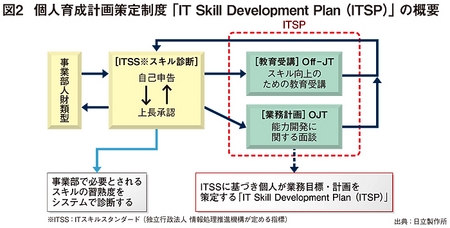 同社は、ITSSによるスキル診断を2008年から取り入れている。さらに、一歩踏み込んで、MBOと同期することで、自分の目標と照らし合わせながら、教育カリキュラムの受講とOJTにつなげていく。ITSSをベースとして、専門性や能力を高めながら自発的なキャリア形成を支援する取り組みとして、「IT Skill Development Plan(ITSP)を作成する施策を今年4月に開始した。