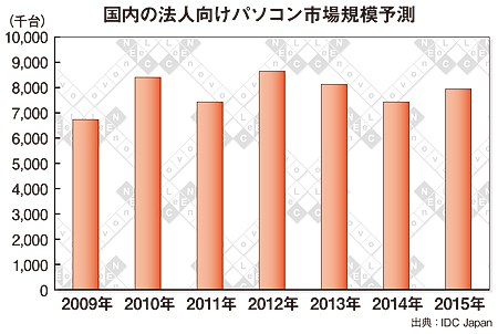 IDC Japanの調べによれば、2010年の国内パソコン市場は1578万台で、過去最高の出荷台数を記録した。しかし、今後は違う。2010~15年における年間平均成長率(CAGR)は0.3%減。ほぼ横ばいで市場規模は変わらない。メーカーにとっては限られたパイを奪い合う消耗戦が、今後も続くことになる。