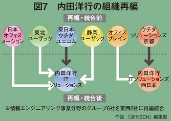 このほか、中国・香港に内田洋行グローバルリミテッドを設立し、14年度までに80億円の売り上げを目指しているが、「スーパーカクテル」の展開は未定としている。グローバル展開で実績をもつ内田洋行だが、成長の軸足を国内市場に置いているという点では2社と変わらない。2011年、直系販社を集約して拡販体制を整備した。中小企業市場を深耕する構えだ。