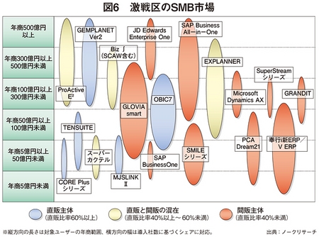 「丸ドメ」の進路 国内の中小企業から一定の支持を集めてきた「丸ドメ(丸っきりドメスティック=国内市場限定)」企業であるベンダー各社は、上位企業層の開拓を進めている。業績が好調なベンダーは少なくない。ただし、OSKのように危機感を表明するベンダーもあり、中長期的には新たな事業モデルの構築が求められる可能性が大きい。