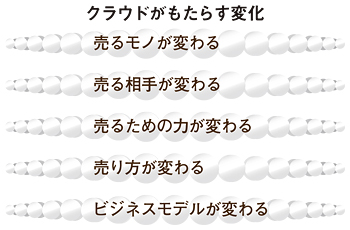 抜本的な変化が求められる クラウドの普及は、確実にさまざまな変化がもたらす。とくにSIerにとっては大きな変化が求められることになるだろう。まず売るモノが変わる。ユーザー企業に提供する機能は同じでも、オンプレミス型システムとクラウドシステムでは、バックで動くハードやミドルウェアが異なるケースがある。そうなれば、新たな製品・サービスについて学ぶことが要求され、SIerの開発者と営業担当者にとっては、売る・開発する力が変わってくる。