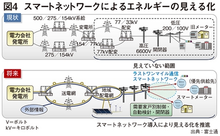 電力の見える化へ 日本でのスマートシティ実現に向け、どういう順序で進めるかが今の課題になる。まず、M2Mネットワークの導入によって、エネルギーを“見える化”することが、一つの切り口となりそうだ(図4参照)。