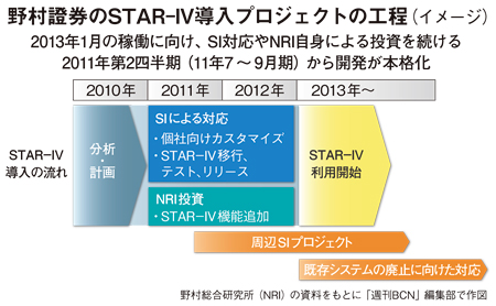 野村證券の要求を満たすために、NRIは自らの負担で「STAR・Ⅳ」の機能拡張を行うとともに、野村證券の固有機能に限って個別にカスタマイズするというやり方で対応している。今年度(2012年3月期)は、「STAR・Ⅳ」への投資が約70億円、個別カスタマイズが約100億円で、来年度(2013年3月期)も似たような比率になる見込みという。