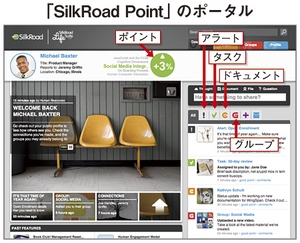 タレントマネジメントとの関係をみてみると、その親密さがわかる。まず、クラウドベースの製品が多いので、サービスの親和性は高い。加えて、ソーシャルメディアはタレントマネジメントでも重要なキーワードとして浮上しており、シルクロードテクノロジーが野心的な製品を発表済みだ。他のアプリケーションと連携する新製品「SilkRoad Point」である。