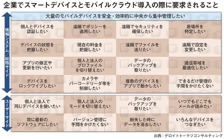 ただ、現段階では、セキュリティポリシーの変更や既存の業務プロセスの見直しなど、負荷作業を強いられる可能性のある企業の情報システム担当者の腰は重い。そのため、スマートデバイスと関連アプリやサービスの販売の場合、ソリューション販売というよりは、通信回線や端末を増やすことで利益を得る通信キャリアの存在が目立っている。基幹の社内ネットワークに関連づけない環境で、スマートデバイスが使われているのが現状だ。逆に、基幹システムとの連携部分で情報システム担当者の要求に応えられる洗練された製品・サービスとソリューションならば、受け入れられる可能性は大きい。クラウドコンピューティングの利用拡大と相まって、スマートデバイスが法人市場に拡大するのは時間の問題といえる。