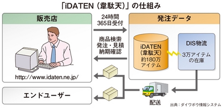 ダイワボウ情報システムは、2013年度(14年3月期)早々に社内の基幹系システムを全面刷新する予定だ。これに合わせて、ウェブEDIを中心としたBtoBシステムの「iDATEN(韋駄天)」をリプレースする。この大幅なシステム改編によって、システム上で収集する定量データと営業担当者が直接収集する定性情報を生かして情報提供を強化し、販社を支援する。
