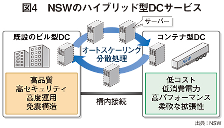 NSWはこれまで、ハウジングサービスをDC事業の主な柱としてきた。セキュリティ上、ハウジングに向かないコンテナ型DCの実証実験を進めると同時に、DCサービスのポートフォリオを拡大していく。同社は今後、山梨などNSWのビル型DCを利用中の既存顧客をターゲットに、トータルで約50%のコスト削減を図ることができるハイブリッドサービスを提案する。これによって、「お客様が他社センターに移るのを引き止めたい」(竹村部長)と、囲い込み戦略を展開しようとしている。