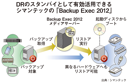 シマンテックでは、「Backup Exec 2012」で簡単操作や仮想環境への対応をアピールし、「災害に際しての確実なバックアップ」を訴えている。テープなどを使って安全な遠隔地に移送する方法だ。ただ、人的リソースなどコストがかかるほか、管理方法が適切でない場合、同じテープを使い続けて磁気テープの劣化によるバックアップの失敗や、災害復旧時に正しいバックアップテープを即座に見つけることができずに復旧が遅れるなどの事態も起こり得る。そのため、「Backup Exec 2012」では、バックアップテープを効率よく管理・保管・運用する機能も搭載している。