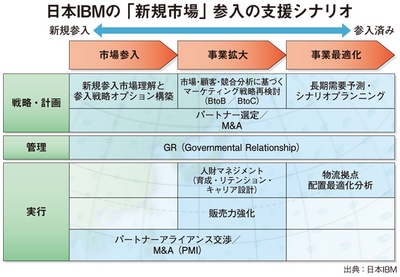 日本IBMが提供する「IBM Global Ready Solution」は、7分野14領域を体系化している。日本ならではの視点で日系企業が活用しやすい仕組みを取り入れている。例えば、グローバル購買では、テンプレート化されたツールを使ってコスト削減の可能性を診断し、業務変革に向けた購買組織・体制の立案やサプライヤー管理などを実行に移す支援を行い、場合によってはIBMやパートナーがアウトソーシングを手がける。すでに、パナソニックやリコーなど大企業が同社の仕組みを使った世界拠点の改革を実行に移している。