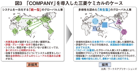 ワークスアプリケーションズの竹市ゼネラルマネージャは、「業態によって異なるだろう。例えば、金融であれば各国の事情に合わせた商品やスキルが必要となるので、人事評価の仕組みも異なってくる。方向としてはグローバルで統一だが、個別に管理するケースも生まれる。一方でトップ層は統合管理したい、中間層もある程度はスキル評価できるようにしたいという思いを抱えて、ジレンマがみられるようになるだろう」と分析する。こうした状況下で、ワークスアプリケーションズにとっての有効な提案は、同社のユーザーである三菱ケミカルホールディングスの事例にみてとれる。