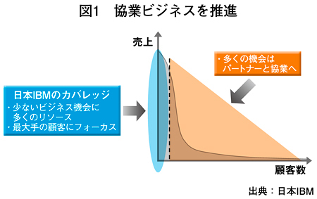 2012年7月に入り、日本IBMは営業部門を「インダストリー(=製造・公共・流通・通信・金融の産業別)」と「エンタープライズ(=地域ごとにさまざまな業種の企業を開拓する)」に再編した。加えて、支社制度を導入して、地理的なカバレッジの拡大と強化に乗り出した。伊藤瑞穂・ソフトウェア事業Lotus事業部パートナー&ビジネス開発部長は、「これまでは最大手の顧客にフォーカスして、少ないビジネス機会に多くのリソースを割いていた」と話し、パートナー戦略のテコ入れを通じて地方とSMB市場を開拓する意向を示す。