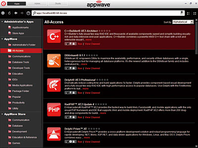 企業内アプリストアを構築できる製品の一つとして、エンバカデロ・テクノロジーズが販売する「AppWave」がある。