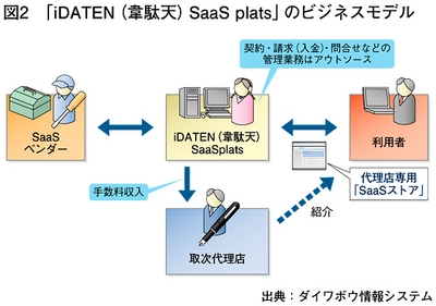 「iDATEN(韋駄天)SaaS plats」は、販社がSaaS/クラウドを取り次ぎビジネスというかたちで提供しているサービスで、取次手数料をストック型のビジネスとして確保できることを売りに、ビープラッツとの協業で2010年1月に提供を開始した。青井正則・販売推進本部サービス営業部長は、「ユーザー企業がSaaSの利用を意識し始めており、最近になって販売パートナーからの問い合わせが多くなっている」と、パートナーの販社を順調に増やすことができるとみている。500社の販社を確保する期限を今年度(13年3月期)中と定めているが、「数より質を求めていく」と、あくまで土台を築く意味だとしている。ユーザー企業に対して、的確にSaaSを販売できる販社を集めていく。