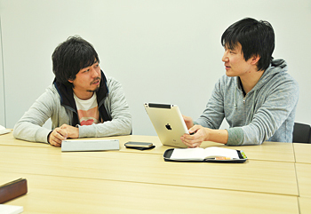 阿部直樹さん(左)と片桐寛さん。スマートデバイスの活用で復興を支援する トライポッドワークスは、Uターンの技術者を積極的に採用することをホームページでアナウンスしている。私はそういう、Uターンがしたい人を受け入れる体制が整っていることに安心し、応募した。採用してもらい、現在は、大学向けの開発案件を担当させてもらっている。ずっとしたいと思った開発の仕事ができるようになった。