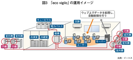 ●DC事業者にも提案 イートスの増子良一代表取締役は、「『BEMSアグリゲータ』になったおかげで、『eco vigilo』が急速に伸びた」と、国の対策に感謝している。従来の食品加工事業者に加え、最近は、カラオケ店やスーパーマーケットでも「eco vigilo」の採用が進んでいるという。そのほか、「データセンター(DC)への納入も決まった」(増子代表)そうだ。イートスは、電気料金の値上げで節電を重視するようになったDC事業者も、「eco vigilo」の重点ターゲットに据えて提案を強化していく。