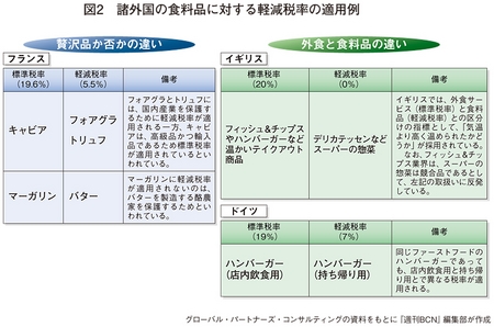 逆進性対策の方向性は、2014年度の税制改正大綱、同要綱、同法案などで示される。複数税率が導入される場合、EUの例をみると、適用の仕方には「お国柄」も如実に現れており、何を軽減税率の対象とするのかという議論も当然出てくるだろう。