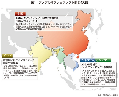 オフショアソフト開発の主要部分を依存している中国での対日ITビジネスに異変が起きているなか、日本の主要SIerは新たなオフショアソフト開発先の確保に努めている。この最有力候補に挙げられるのがASEANのミャンマーとベトナムだ。両国はASEAN地域のなかで政情が比較的安定していて、しかも人件費が安いという共通点がある。