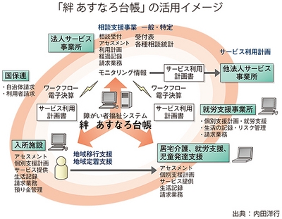 ●パートナーは「高齢者福祉」を横展開 障害者総合支援法施行に伴い、障がい者の地域移行での役割が重要性になってくる相談支援事業者だが、無条件でその看板を掲げられるわけではない。相談支援専門員という実務経験と研修を経た職員が所属している組織のみ、相談支援事業を手がけることができる。内田洋行が「あすなろ台帳」の営業対象としているのは、まずは相談支援事業者としての体制が整っている事業者が中心になる。江口執行役員は、「すべての障がい者福祉サービス事業者のうち、すでに2割ほどは、相談支援専門員の配備に着手しており、そうした動きはさらに広がる」とみており、市場拡大に期待を寄せる。また、相談支援事業の重要性に関する啓発活動も、セミナーなどを通じて積極的に展開する予定だ。