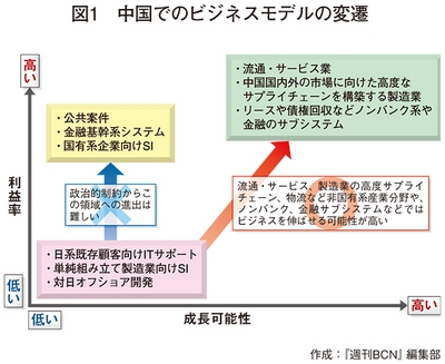 では、日系SIerがビジネスを伸ばす可能性が高い分野はどこかを探れば、上記ではない分野ということになる。つまり、製造業でもより高度なサプライチェーン管理や、中国政府が意識的に伸ばそうとしている流通・サービス、第三次産業の分野である。国有色の薄い産業分野、あるいはリースやクレジット、債権回収などのノンバンク系といった金融の中枢から距離のある分野なら参入しやすい。