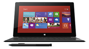 クライアント端末については、最近、企業がタブレット端末を利用するケースが増え始めている。ユーザー企業は、iPadやAndroid端末を導入して、営業担当者のワークスタイルの変革や、店舗スタッフの業務効率化などを実現しようとしている。そんななか、ユーザー企業のすそ野を広げる可能性を秘めた端末の販売が開始された。その端末とは、マイクロソフトの「Surface」だ。法人向けに、「Pro」と「RT」の2種類を用意した。