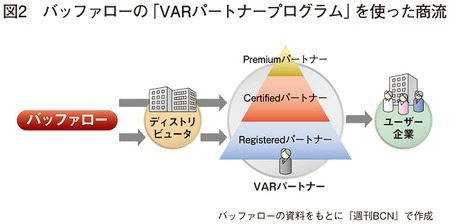 他社製品と比べてリーズナブルな価格でXP移行サービスには欠かせない製品に浮上した「テラステーション」販売は、バッファローが構築している2次代理店への支援制度「VARパートナープログラム」に参加しているリセラーやSIerを通じて行っていく。「テラステーション」は、10万円以下のモデルを揃えており、法人向けストレージのなかでは低価格だ。しかも、他社が提供しているXP移行サービスなどと比べても価格が安いことから、ユーザー企業がパソコンを買い替えるという本命のビジネスを販社がものにできると判断している。