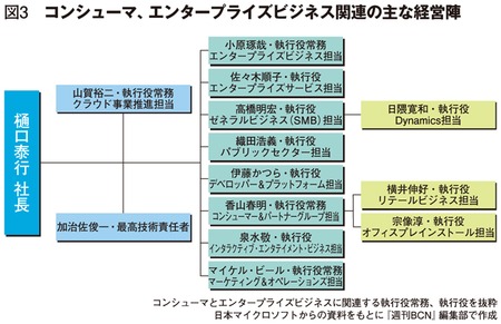 しかし、それ以外に大きな変更点は見当たらない。日本マイクロソフトは、一昨年度とその前の年度、先進6か国のなかで最も優秀な成績を収めたとして米国本社に評価された。昨年度はその地位を米国に明け渡したものの、「非常に僅差だった」(樋口社長)。具体的な数値は出していないが、日本法人の業績は樋口体制になってから増収増益を続けている。それだけに「大きく仕組みを変える必要はない」(同)という結論だ。