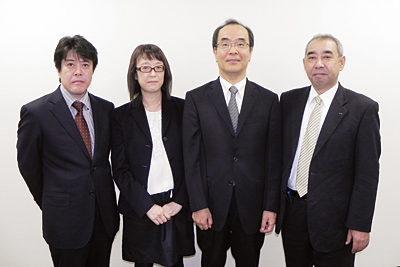 左からコアネットインタナショナルの大下智康部長、桒山久美子部長、吉原清彦社長、平光誠部長