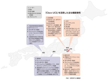 UCSの有望市場となるのは、オンラインゲーム事業者のほかに、デスクトップの仮想化が進んでいる教育機関や地方自治体だ。ネットワンシステムズは、この1月、震災対応を急ぐ愛知県に、プライベートクラウド基盤と遠隔バックアップのシステムを入れたと発表した。愛知県は、UCSサーバー、ヴイエムウェアの仮想化ソフト、EMCのストレージやバックアップ装置などを使って構築した基盤を生かし、大型の汎用機で稼働している12個の業務システムと個別のサーバーで動いている業務システムを同基盤に移行する。データは県外のDCにバックアップすることで、東南海地震に備えた事業継続の対策を図る。