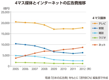 しかし、多くのSIerの担当者が異口同音に話すのは、「超大手を別にして、大多数の流通・小売業の反応は鈍い」ということだ。ネットの広告費がラジオや雑誌、新聞を次々に追い抜き、差を広げたのと同様、このままではスマートデバイス対応やビッグデータ分析、ソーシャルメディア連携など、最新のITでフル武装するネット勢にいくつかの既存流通チャネルは規模で追い抜かれ、自らのパイを奪われることになる可能性が高い。