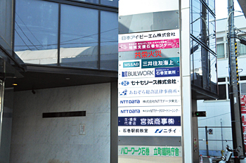 中央通りに面する「石巻ビルディング」に、日本IBMやNTTデータ東北が事業所を構えている しかし、ITベンダーが存在することだけでも、市にとっては心強い。新産業創造課を率いる近藤順一課長は「絶対に逃げられないよう、パートナーシップに力を入れる」と強調する。市が描くイメージでは、居住ゾーンのほかに、中心市街地や公共施設、海岸の方面の工業団地地区や水産加工地区においてもICTを活用して、事業の創出を図る(図1参照)。こうした本格的なスマートシティを実現するためにも、ITベンダーと密なパイプを築く必要がある。