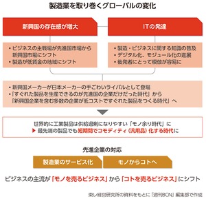 「ネットワークにつながらないスタンドアローンのモノづくりでは、いくらトップを維持しているとしても、いずれはシェアを失ってしまう。モノがネットワークにつながることで、製品そのものが変わっていくからだ。スマートフォンがその典型だ」と増田部長は指摘する。日本の携帯電話メーカーが、スマートフォンに乗り遅れて大打撃を被ったのは周知の通りだ。情報ネットワークをサービスとして有効活用できるかどうかが、業界勢力図にダイナミックな変化をもたらす。後発の企業が一気に逆転するのも可能な状況になった。