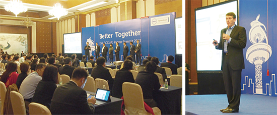 2013年にはアジアで初のパートナーイベントを成都で開催した グローバルレベルでパートナービジネスの強化を最初に打ち出したのは、デル氏がCEOに復帰した07年のことだった。04年にデル氏がCEOを退いたときは、パソコン市場が成熟期を迎えていた。その後の成長に陰りがみえ始めるようになったことから、デル氏はCEOに戻る。「ソリューションプロバイダへの進化」とともに掲げたのが「パートナービジネスの開始」だった。目的は明確で、販路を広げるため、多くのユーザーにアプローチするため、である。