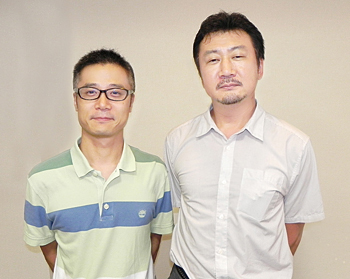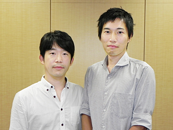 NTTデータMSEの杉本哲朗課長代理(左)と山下智也課長代理 ●事業化に向けて本格始動 NTTデータMSEも、「遠隔指示」「作業支援」 「可視化」をキーワードにウェアラブル端末の事業化を推進している。同社は眼鏡型ウェアラブル端末を使って管理者から作業者への「遠隔指示」、カメラでバーコードを読み取ることによる「作業支援」、顔認識による人物の「可視化」に取り組む。例えば、バーコードを読み取ることによって、 「この商品は××です。○○へ運んでください」とメッセージを表示して作業ミスを減らしたり、保守作業などで現地の作業員に「次の作業は××です。現場の写真を送ってください」と遠隔で指示を出したりする。顔認識では、セミナーの来場者の顔を認識して、眼鏡型ウェアラブル端末にプロフィールを表示する機能を想定している。