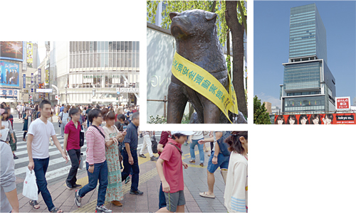 人気スポットの忠犬ハチ公像、歩行者でごった返しているスクランブル交差点、2012年に開業した新ランドマークの渋谷ヒカリエ。ICTを活用して、渋谷の魅力を世界に伝える