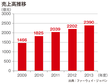 そんな中国のIT企業のなかで、ひときわ大きな存在感を放っているのが、ファーウェイ(任正非CEO)だ。2013年度(13年12月期)の売上高は、前年度比8.5%増の2390億元(4兆1371億円)と、中国IT企業で最大規模を誇る。