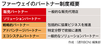 ●“イノベーション”が売り 14年度内には、さらにパートナーを1000社拡充する方針だ。劉維明・法人向けICTソリューション事業グループパートナー・アライアンス担当プレジデントは、「これによって、法人向けICTソリューション事業の成長を加速させ、法人全体の売上高を、今年度に35億ドルまで引き上げる」と意欲を示している。