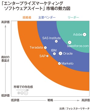 今年10月に発表された米フォレスターリサーチのレポートでは、デジタルマーケティング・ソリューションの統合製品ベンダーのリーダー企業であると評価された。実際にグローバルでは、2013年度の売上高40億6000万ドルのうち、デジタルマーケティング関連がすでに4割を占めているという。ただし、日本での市場開拓はこれから。今年7月に、日本マイクロソフトのCMOなどを務めた佐分利ユージン氏が社長に就任し、拡販に本腰を入れ始めた。