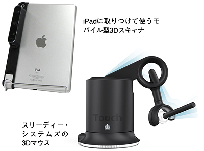 スリーディー・システムズは、比較的安価に手に入る小型の3Dスキャナや、iPadに取りつけて使うモバイル3Dスキャナなどを積極的に製品化。さらに3Dマウスの開発にも意欲的に取り組んでいる。3Dスキャナは物体を立体的に撮影できるもので、3Dマウスは3D編集ソフトのなかに映し出された3D造形物を触れるデバイスである。3Dマウスは、バーチャルの3D造形物を触っているような感触(触覚)や反力(力覚)を得られることから、触覚デバイスや反力デバイスなどと呼ばれることもある。
