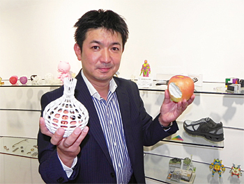 台湾XYZプリンティングのパーソナル3Dプリンタ。価格は税込み11万9800円 ライバルメーカーの米スリーディー・システムズは、3Dスキャナや3Dマウス、3Dコンテンツの編集ソフトの開発に力を入れる。ここ数年で3Dデータ関連のさまざまな企業のM&A(合併と買収)を行い、データの入力や編集ソフトの拡充を図ってきた。スリーディー・システムズ・ジャパンの並木隆生・ジオマジック・ソリューション事業部セールスディレクターは、「3Dプリンタ単体では何もできない。入力デバイスと編集ソフトが揃って初めて生きてくる」と、入力から編集、出力まで揃えることが大切だという。
