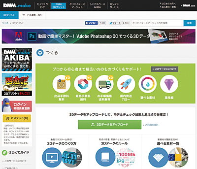 ●当初予想の2倍の発注量 3Dプリントサービスを手がけるDMM.comは、「DMM.make」というサイトを通じて、3Dコンテンツの公開や販売、プリントサービスまで幅広いサービスを展開している。DMM.comの功績は、これまで素人にはなじみが薄かった3Dプリントを身近な存在にしたことにある。価格も大幅に抑え、例えば石膏フルカラーの出力で2600円から、ナイロンで1600円からという値付けをした。プリンタは石川県の事業所に設置。出力した造形物は石川県から全国へ発送している。
