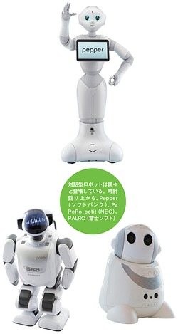 ●対話型ロボット続々登場 昨年6月、ソフトバンクは感情認識型ロボット、Pepperを発表した。Pepperで動くアプリケーションソフトを充実させることを優先して当初の予定を変更し、一般発売日は2015年2月を2015年6~8月に延期したが、話題性は抜群。ソフトバンクという大手企業がロボット事業に参入したことのインパクトは大きく、対話型ロボットの認知度は一気に高まるはずだ。この2月には、人工知能システム「IBM Watson」を採り入れることを発表。すでに研究開発が進んでいるという。PepperとWatsonという知名度の高い二つのロボット(テクノロジー)のタッグは、ロボット業界とIT業界を大いに刺激する。
