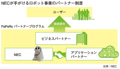 例えば、NECはPaPeRo petitで動作するアプリを、ソフト開発企業が容易に開発できるようなプログラムを用意した。NECはAPIを提供し、ソフト開発の効率化を支援。最新情報や先端事例も共有できるので、ソフト開発企業はビジネスを展開しやすい。NECの仕組みは、ロボットビジネスに興味をもつソフト開発企業の多くに受け入れられ、問い合わせ殺到で現在は一時的に新規の申し込みを断っている状況だ。ソフトバンクがPepperの一般発売を延期したのも、開発者による購入の申し込みが予想以上に多かったため。対話型ロボットをビジネスに活用しようとする動きが活発な証といえる。