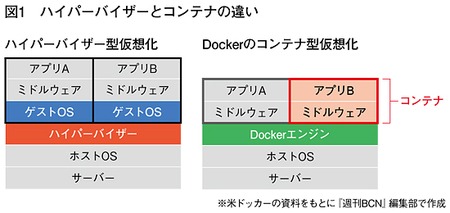 Dockerは、米ドッカーが提供するオープンソースの仮想化ソフトウェアである。対応するサーバーOSはLinuxだけだが、マイクロソフトがWindows Server対応版の開発意向を表明しているという。つまり、Dockerは、ハイパーバイザー型の仮想化ソフトウェア「Hyper-V」をもつマイクロソフトでさえ、無視できない存在というわけだ。